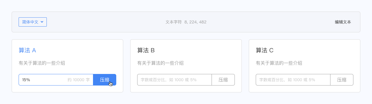 使用 小简 工具的用户,在下方选择不同的压缩算法并 填写压缩阈值 后,点击压缩开始计算结果。